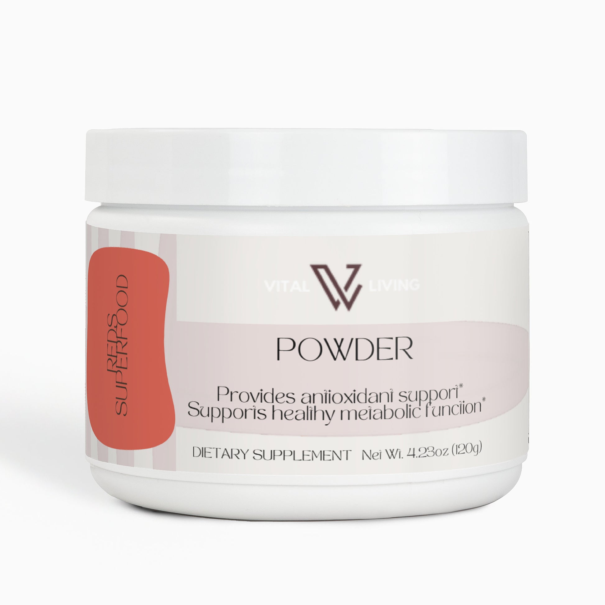 This reds powder supplement offers a rich blend of fruits, vegetables, and botanicals aimed at delivering antioxidants, fiber, and essential nutrients for overall health. The formula includes Beet Root, Strawberry Juice, Hibiscus, and a variety of other nutrient-dense ingredients like Acai Juice Powder and Cranberry Powder, designed to support optimal wellness. With a content of 120 grams, this supplement is perfect for daily consumption, providing a convenient way to boost your intake of vital nutrients and antioxidants to support health and vitality without the need for artificial additives.*